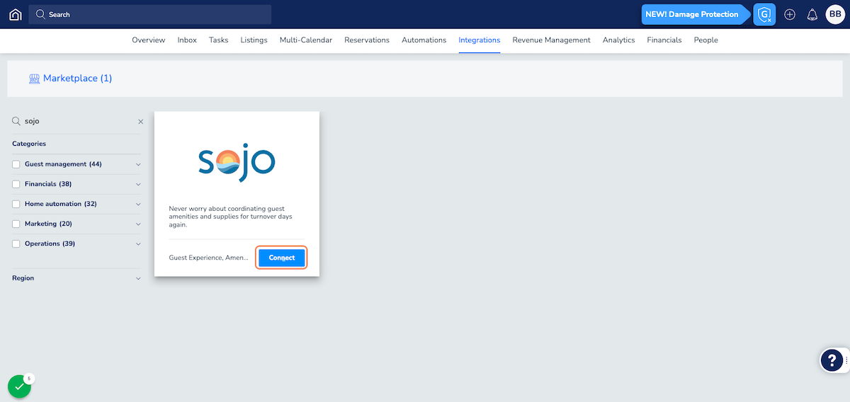 - Click Connect in the sojo marketplace listing.
