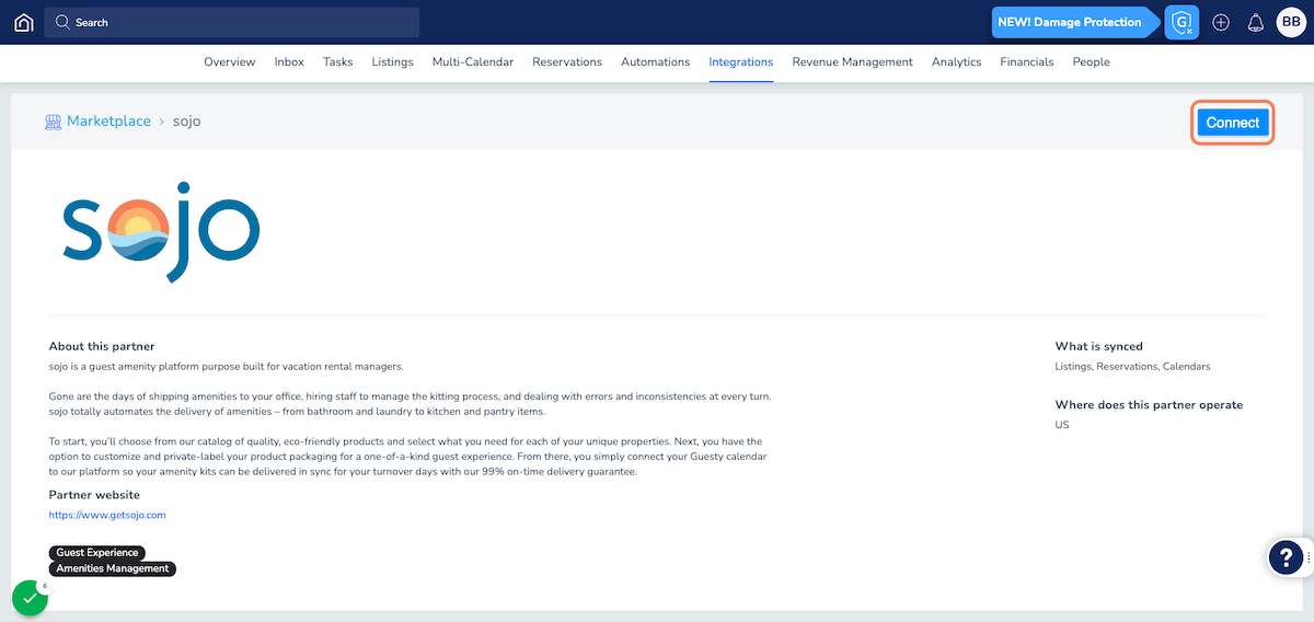 sojo's dynamic integration with Guesty allows sojo to get real time property and reservation data. We'll use this to ship the right amenities at the right time.