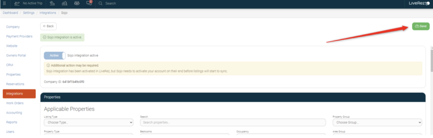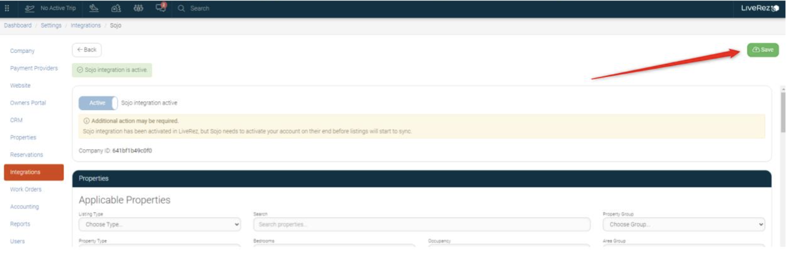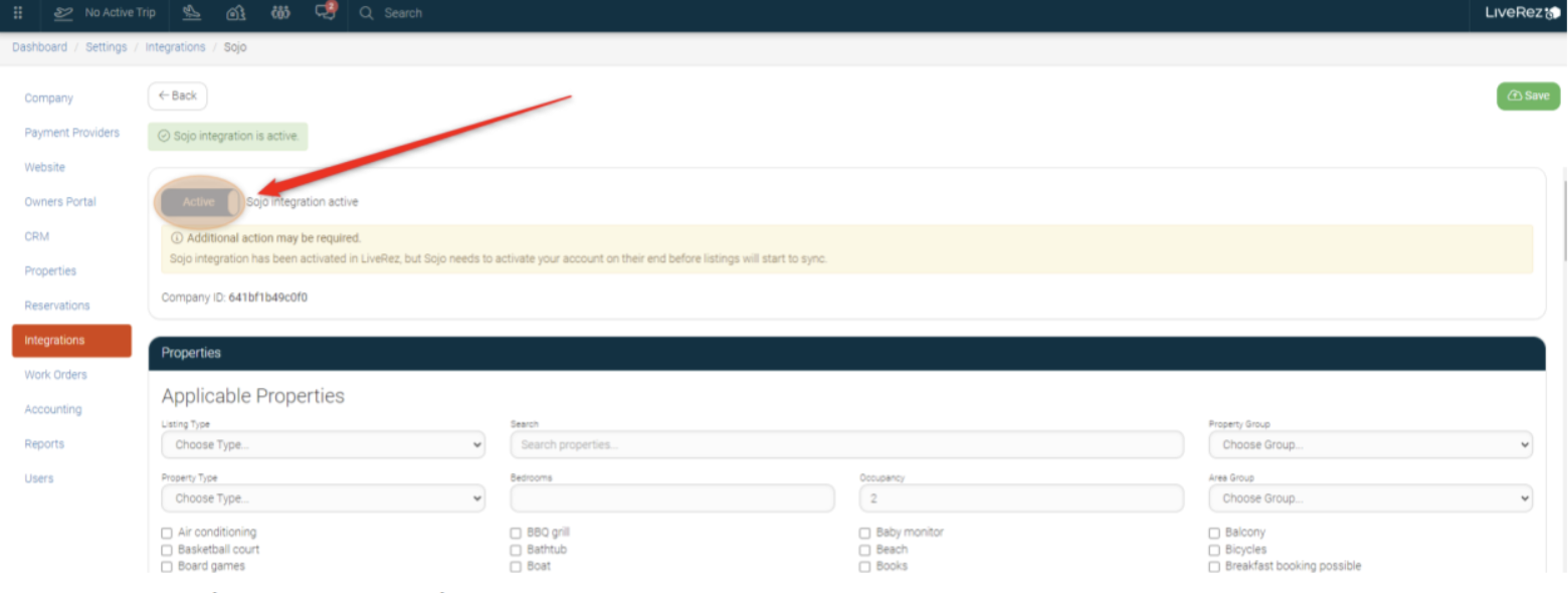 While logged into your LiveRez Ignite system follow these directions to activate sojo: