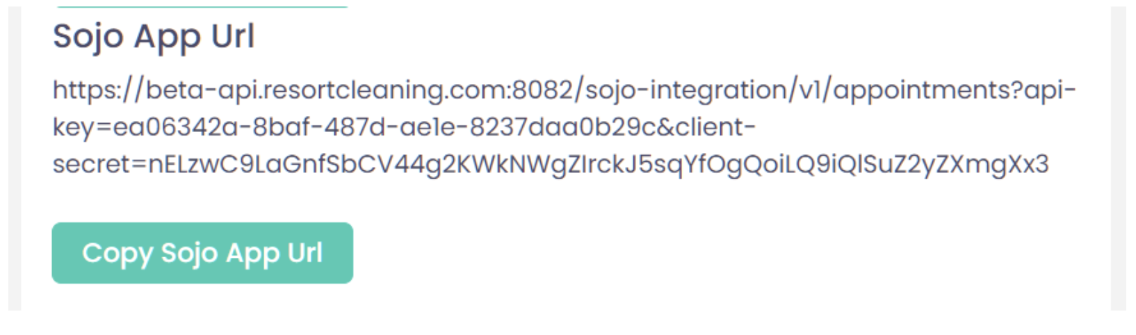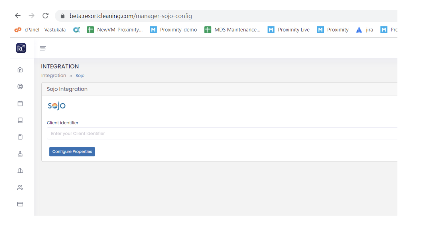 3. In ResortCleaning, a new menu item has been created and has a label of “sojo”. The user will navigate to this menu item from: Setup->Integrations->sojo