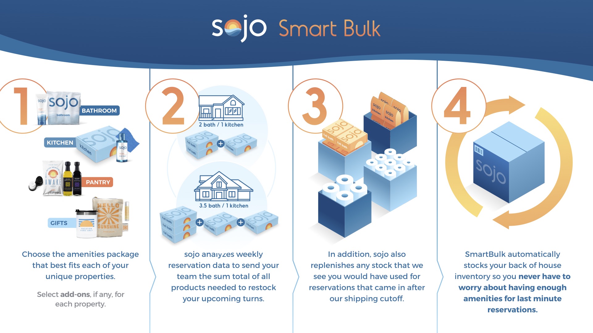 - Our onboarding team will help you get set up with your initial safety stock order but we recommend having about 20% of the total goods you'd need to stock your full inventory of homes.