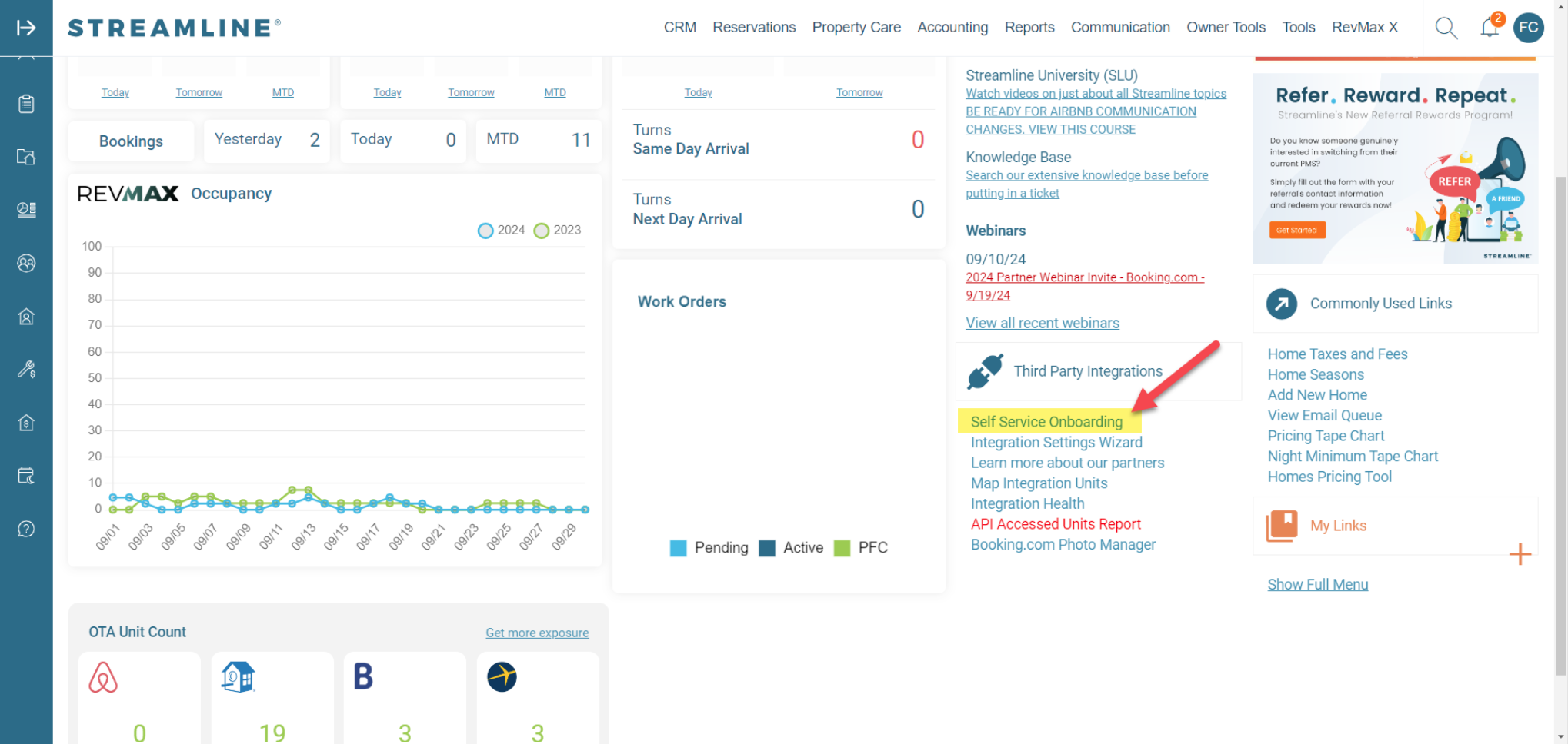 - From your Streamline home screen, click on Self Service Onboarding.