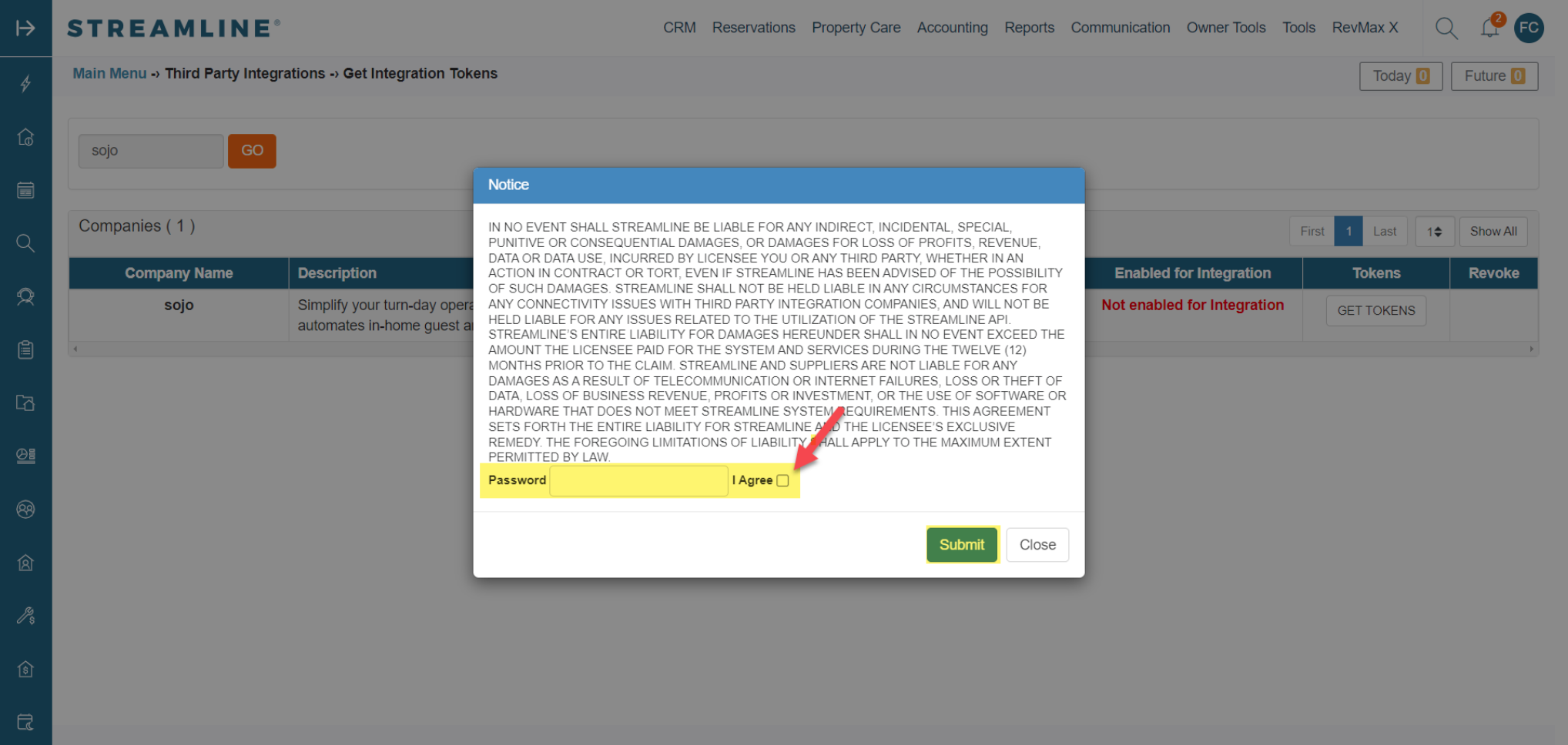 - Enter your user Password, check the box for I Agree and click Submit.